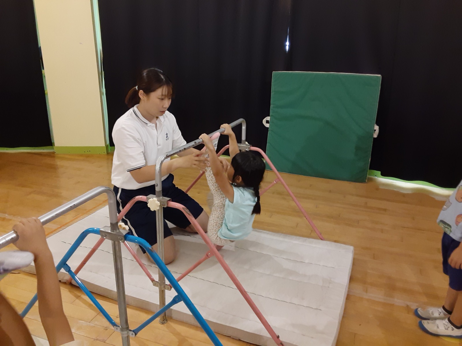 跳び箱、鉄棒、マット等、様々な運動を行います。